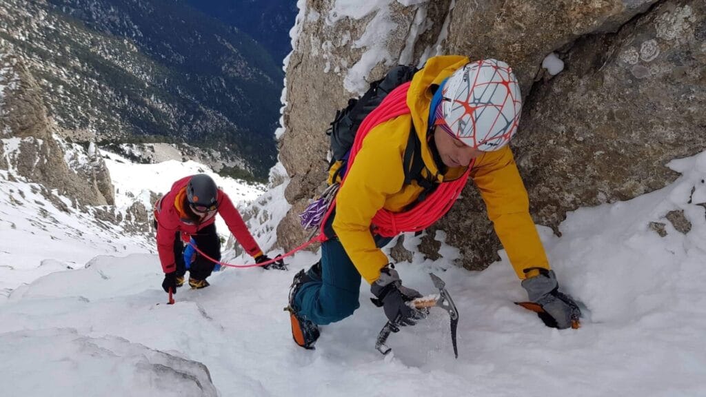 Για να γευτείς, όμως, τους καρπούς της χειμερινής αναρρίχησης πρέπει να είσαι έμπειρος και γρήγορος αλπινιστής. Καλός αναρριχητής βράχου με ευχέρεια στην τοποθέτηση ασφαλειών, αλλά και καλός χειριστής των κραμπόν και των πιολέ για τον πάγο και το χιόνι. Επιπλέον, χρειάζονται οι αρετές της υπομονής και της ψυχραιμίας καθώς και αντοχή στο κρύο και την κακουχία. Να έφταναν όμως μόνο αυτά! Πρέπει να είσαι και έμπειρος ορειβάτης γιατί υπάρχει η πρόσβαση και η επιστροφή από τη διαδρομή, πολλές φορές σε απομονωμένες περιοχές. Όλα τα παραπάνω συνθέτουν μια μοναδική αναρριχητική εμπειρία στο ομορφότερο φυσικό περιβάλλον, τουλάχιστον για εμάς, το βουνό. Για αυτό θεωρείται από πολλούς η πιο ολοκληρωμένη μορφή αναρρίχησης και η πιο επικίνδυνη.